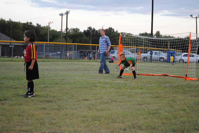 So he was excited to get to switch to offense in the second half of the game. He tried so, so hard and came close to a goal several time with no luck. I kept telling him "don't give up" (and I may have bribed him just a little). He stuck with it and at the very end of the game he scored a goal!